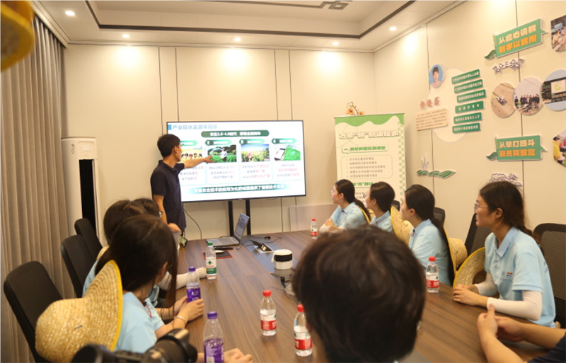 勞作后,在可新農場的會議室,仲曉磊為隊員們介紹了智能物聯網技術打造的高效數字化農田監測系統平臺,展示了該平臺在環境監測、長勢診斷以及產量預測等方面的應用。