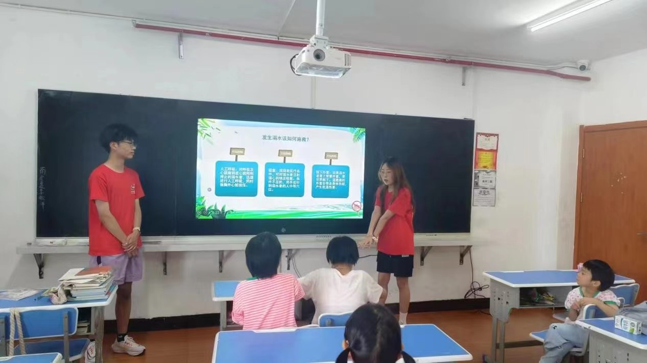 宣講中,實踐隊員先以小視頻導入,通過PPT演示、真實案例分析,用通俗易懂、生動有趣的語言,傳授防溺水知識,幫助小朋友們認識到溺水的危險性和防溺水的必要性,向孩子們強調了防溺水的“六不準”原則、預防與識別溺水隱患以及正確的溺水救護方法。最后,實踐隊員們親自演示CPR(心肺復蘇術)和人工呼吸的急救技能,教育引導小朋友們增強安全防范意識,提高自救自護的能力。