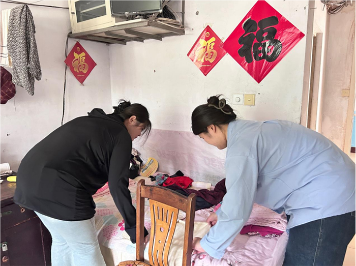 注:圖為向陽計劃實踐團成員劉思萌劉曉丹在整理床鋪