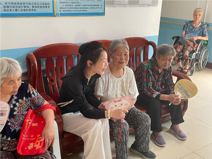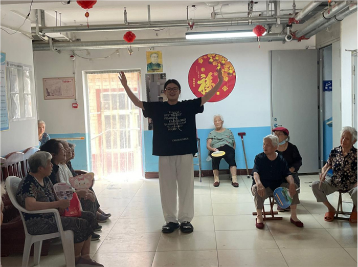 實踐團成員們還為老人們準備了八段錦,唱歌和講故事等活動與老人一起慶祝。老人們參與其中,其樂融融,成員們精彩的表演博得了老人們的陣陣掌聲。氣氛輕松愉快,充滿歡笑。
