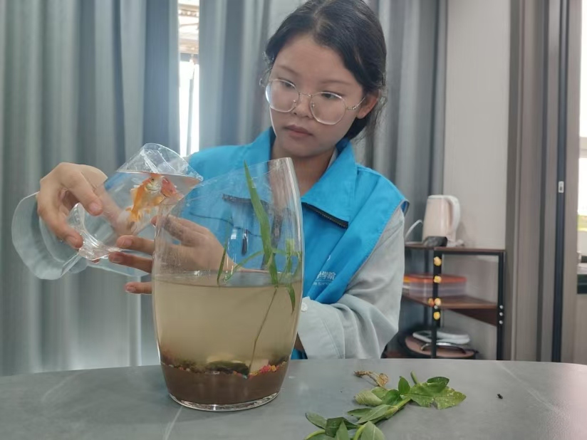 點滴綠意聚瓶中,環保意識植心中。此次生態瓶制作活動充分發揮學科優勢,增強了學生對生態系統結構的理解,不僅為學生提供了一個學習和交流的平臺,同時也鍛煉了學生的動手能力和創造力,促進了環保理念的普及和傳播,樹立了“綠水青山就是金山銀山”的生態文明理念。