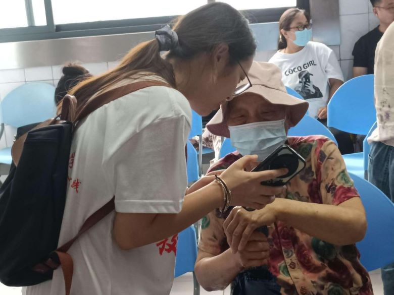 圖為實踐團成員在醫(yī)院幫助老年人使用手機。通訊員 于子貽 供圖