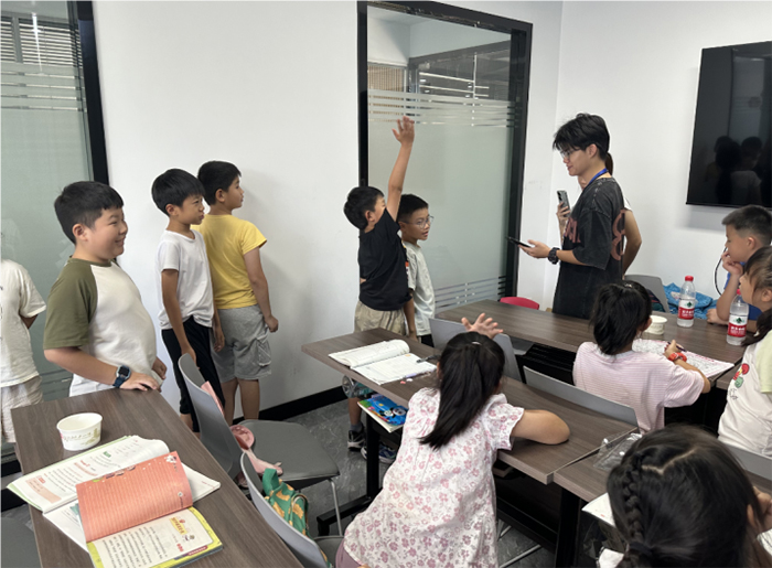 英語課上,老師采用互動式教學,鼓勵孩子們大膽開口說英語。孩子們積極參與英語對話練習,課堂氣氛十分活躍。有個孩子一開始不敢發言,但在老師的鼓勵和同學的幫助下,逐漸克服了膽怯,勇敢地用英語表達自己的想法。