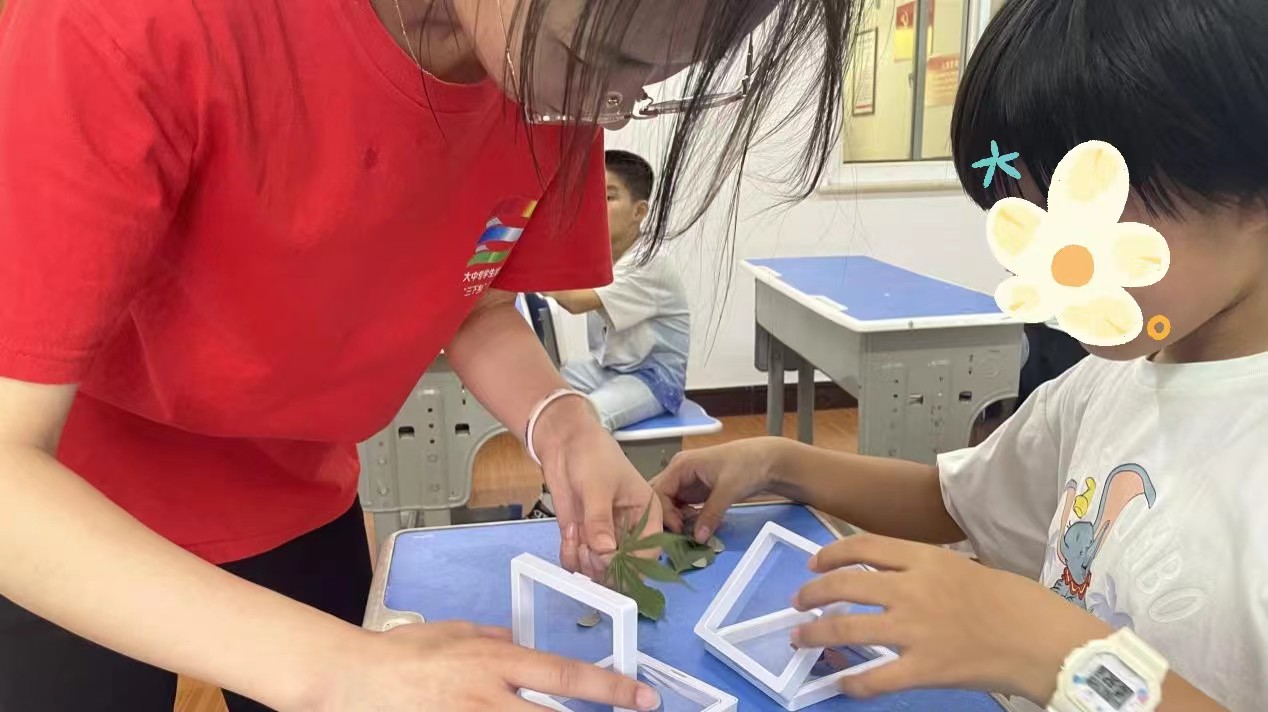 植物是自然界不可或缺的一部分,了解植物不僅能夠增進孩子們對自然界的認識,還能激發他們對生物學的興趣。為了讓學生們近距離接觸自然,體驗科學的魅力,志愿者們再次帶領孩子們制作植物標本(裝框)的實踐活動。