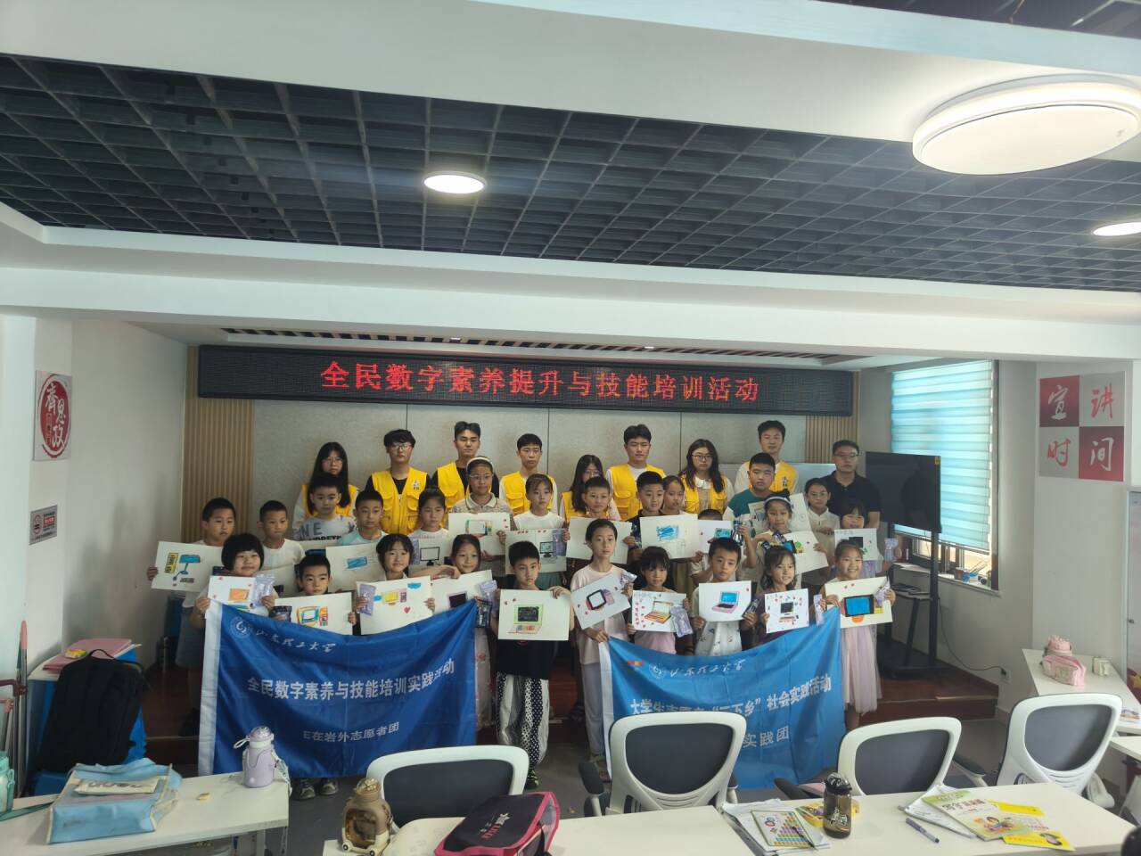 活動最后,實踐團與“怡”起成長課堂的師生們,以及所有作品合影留念,定格下了這一刻的歡笑與夢想。這不僅是一場視覺與心靈的盛宴,更是一次科技與夢想交織的旅程。在輕松愉快的氛圍中,科技的種子在孩子們心中悄然生根,未來科技的探索者們,正從這里啟航。