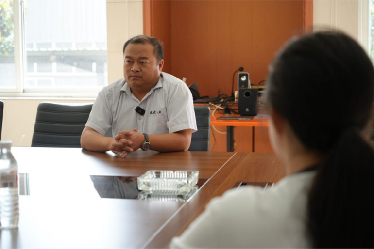 圖為團隊成員采訪負責人鄭士付先生 楊羽凡 攝