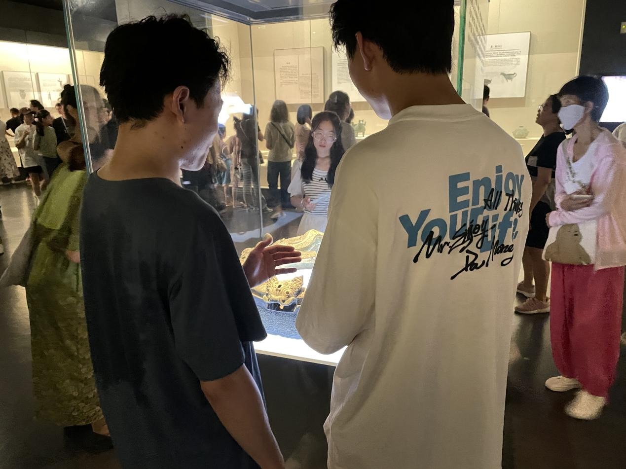 圖為實踐隊成員在與其他游客互相交換對歷史文物的見解。程業(yè)挺 供圖