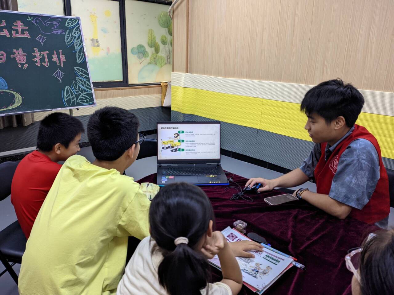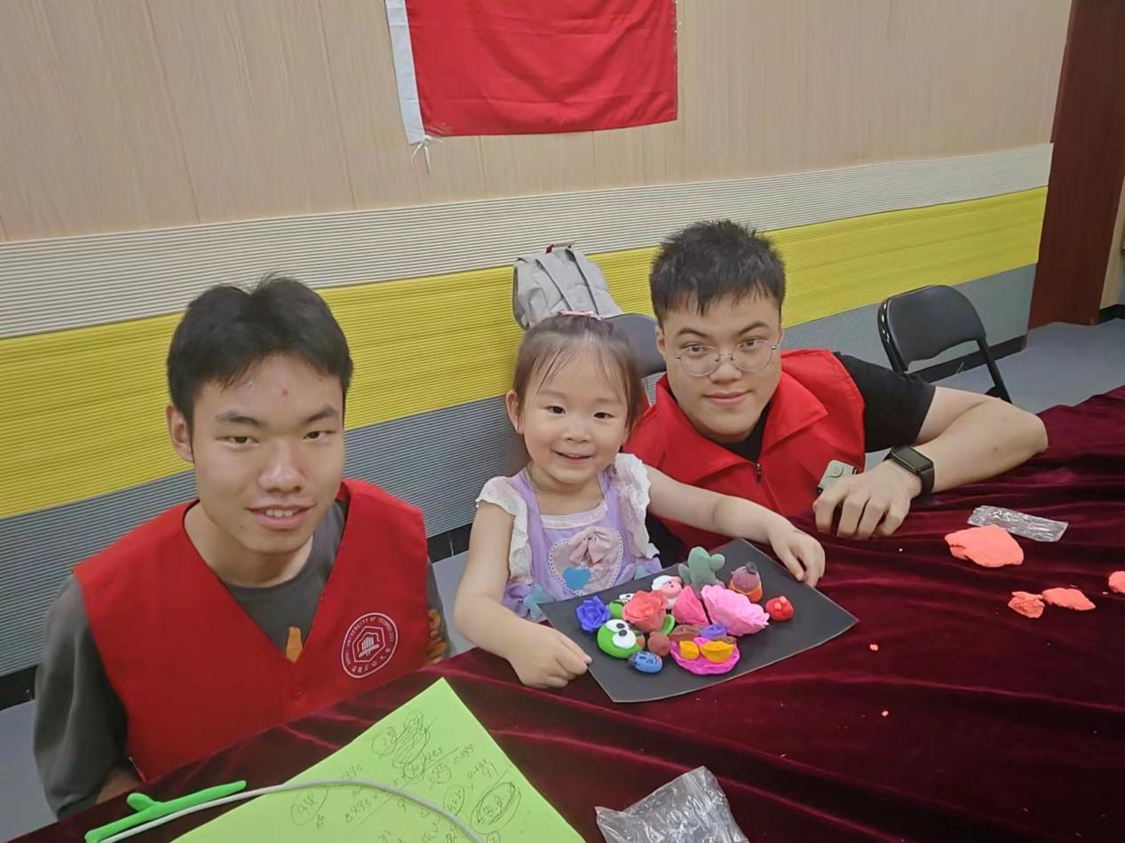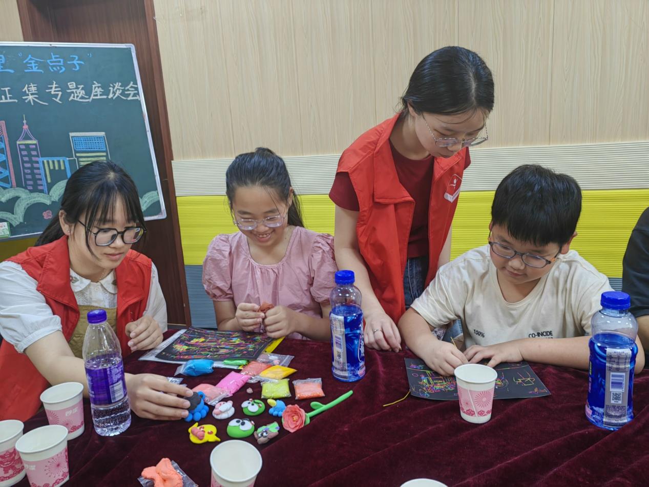 圖為志愿者與孩子們一同做手工。何肖陽(yáng) 供圖