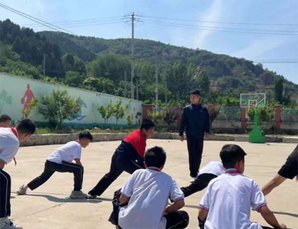 圖為實踐團成員戚雨恒在給孩子們上體育課