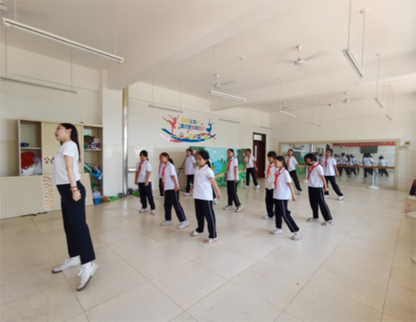 通過體育課,讓孩子們進一步的去了解了籃球的具體規則以及技術動作的要領。此外,本次支教課程不僅只有體育課程還有舞蹈類課程,實踐團成員們利用自身的舞蹈技能去教授孩子們舞蹈動作并為孩子們排練出節目取得圓滿成功。