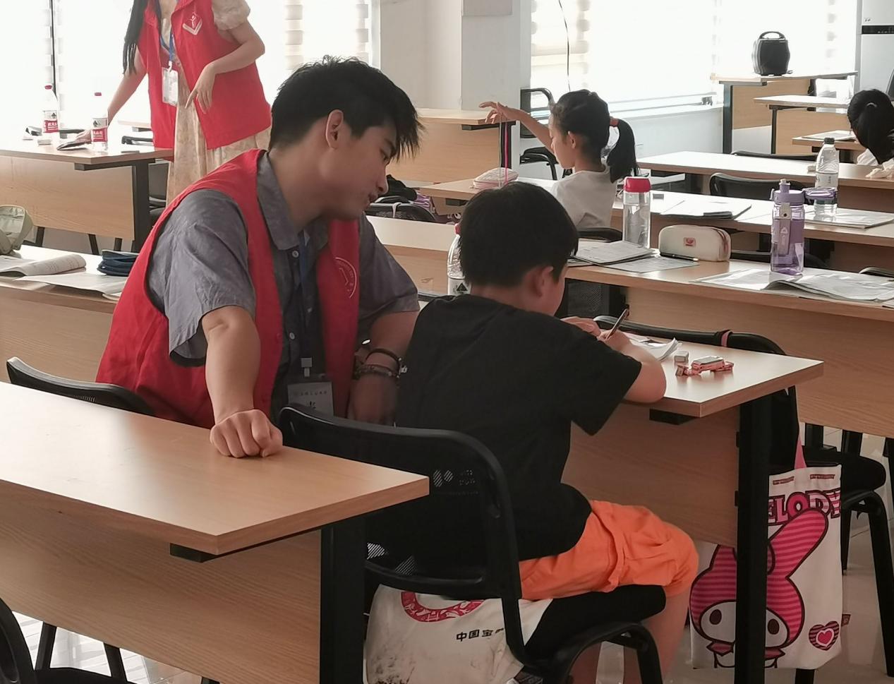 圖為志愿者輔導(dǎo)孩子作業(yè)。王浩 供圖