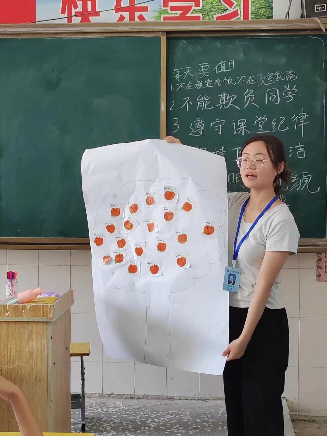 圖為實踐隊隊員和學生們的“班級公約”和“友誼樹”黑板報合照。中國青年網通訊員 張杰 攝