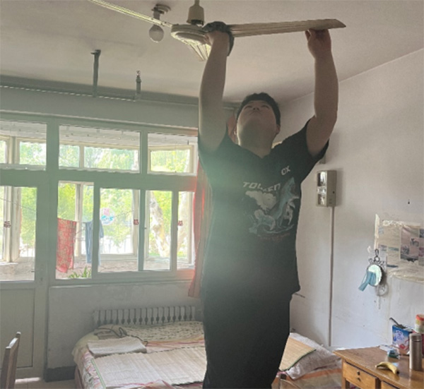 注:圖為實踐團(tuán)成員戚奧奧幫老人擦風(fēng)扇