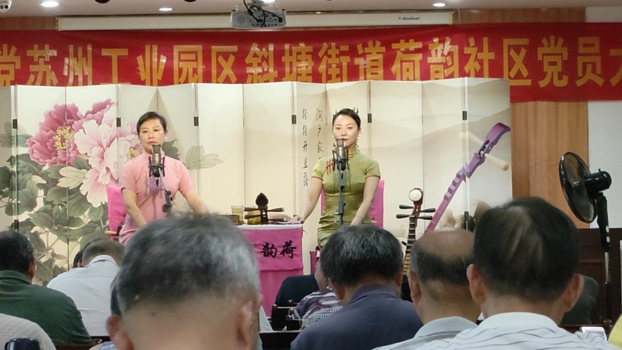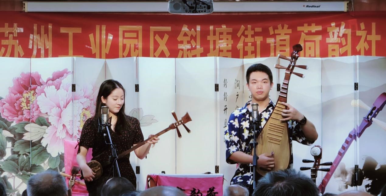 荷韻書場的生動交流午后,調研小隊前往位于蘇州市工業園區荷韻社區的荷韻書場,與在此演出的蘇州市評彈學校楊柳老師及學生們進行了面對面的交流。楊柳老師以其深厚的藝術造詣和滿腔熱情,分享了她在評彈傳承與創新方面的探索與實踐。楊老師強調了聽眾與演員之間的相互關系,表示“好的演員需要好的聽眾”,這引發了小隊成員們對傳統文化傳承方式的深思。