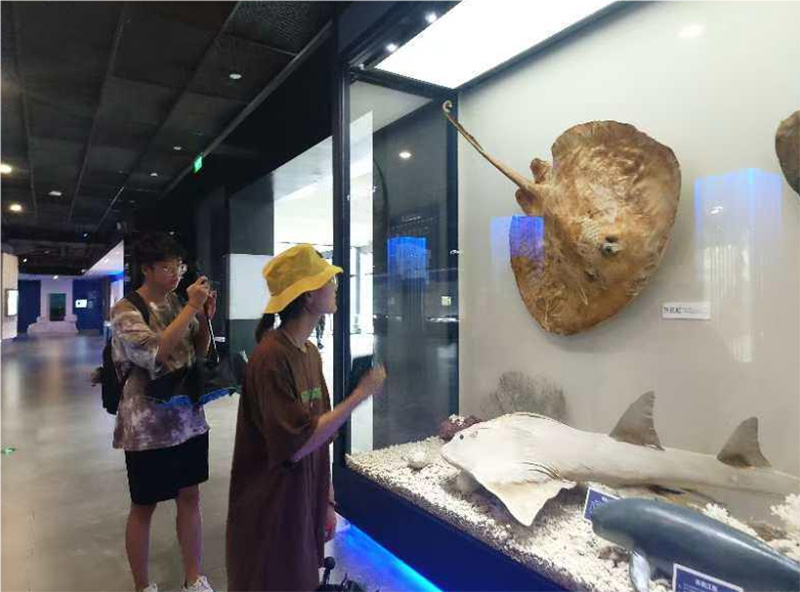 二、中國漁文化館:科技賦能漁文化展示 隨后,實踐小隊來到了第二站象山中國漁文化館。這座集漁文化展示、文創體驗為一體的多功能文化創意園,通過現代化的展示手段,向我們呈現了象山漁文化的發展歷程。文化館共四層布展,從“漁海傳頌”到“漁海印記”,層層遞進,同時大量運用了AR技術、裸眼3D技術等現代科技手段,讓我們能夠更直觀地感受漁文化的魅力。