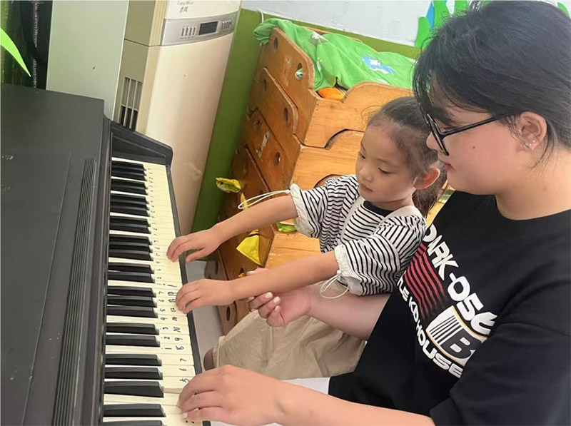 圖為實踐團成員為幼兒園兒童教授鋼琴