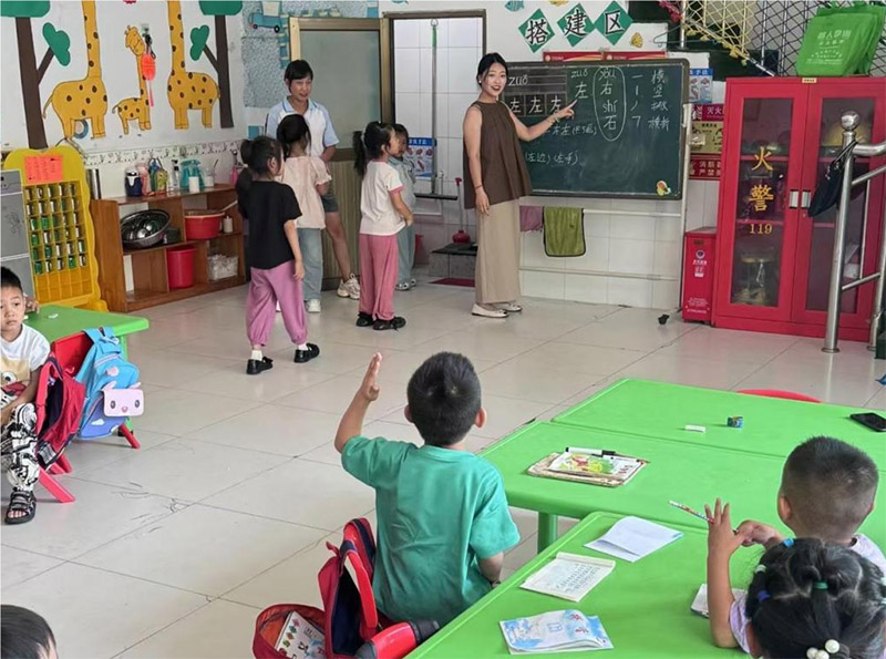 圖為實踐團成員為幼兒園兒童講課
