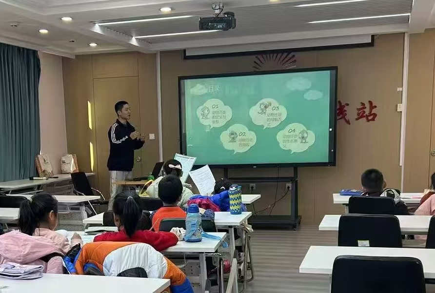 第一節課是“大雁為何南飛”。當王燕齊在黑板上畫出一行展翅飛翔的大雁,孩子們那清澈的眼神里充滿了好奇與期待。他微笑著問道:“小朋友們,你們知道大雁為什么要南飛嗎?”教室里瞬間熱鬧起來,稚嫩的聲音此起彼伏,有的說是為了找溫暖,有的說是為了尋找食物。