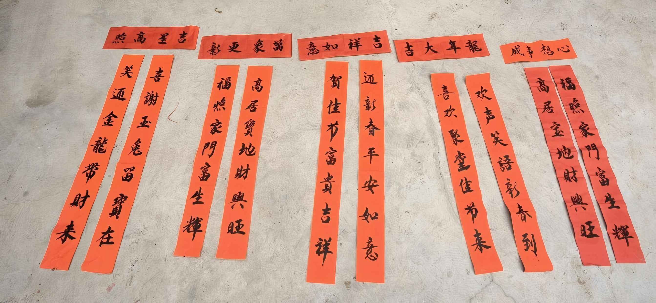 圖為實踐隊隊員為村民書寫的部分春聯 中國青年網通訊員 張安悅 供圖