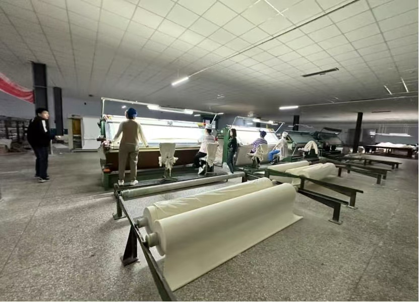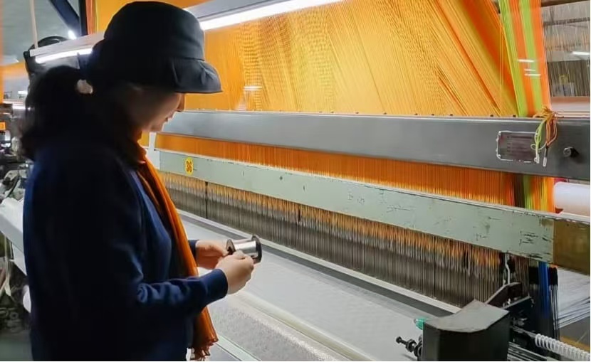 圖為車間工人機械化紡織面料。姜佳麗 供圖