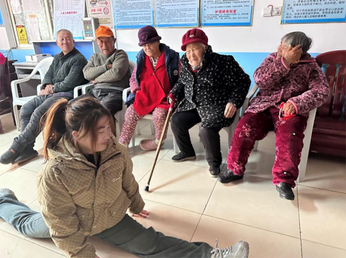 除了文藝表演,實踐團成員們分組經常到各個房間,慰問老人的情況,與老人們聊天、談心,傾聽他們的過往經歷和生活故事,許多老人表達了對實踐團成員們的喜愛之情,有的老人緊緊握住實踐團成員的手,不愿松開。