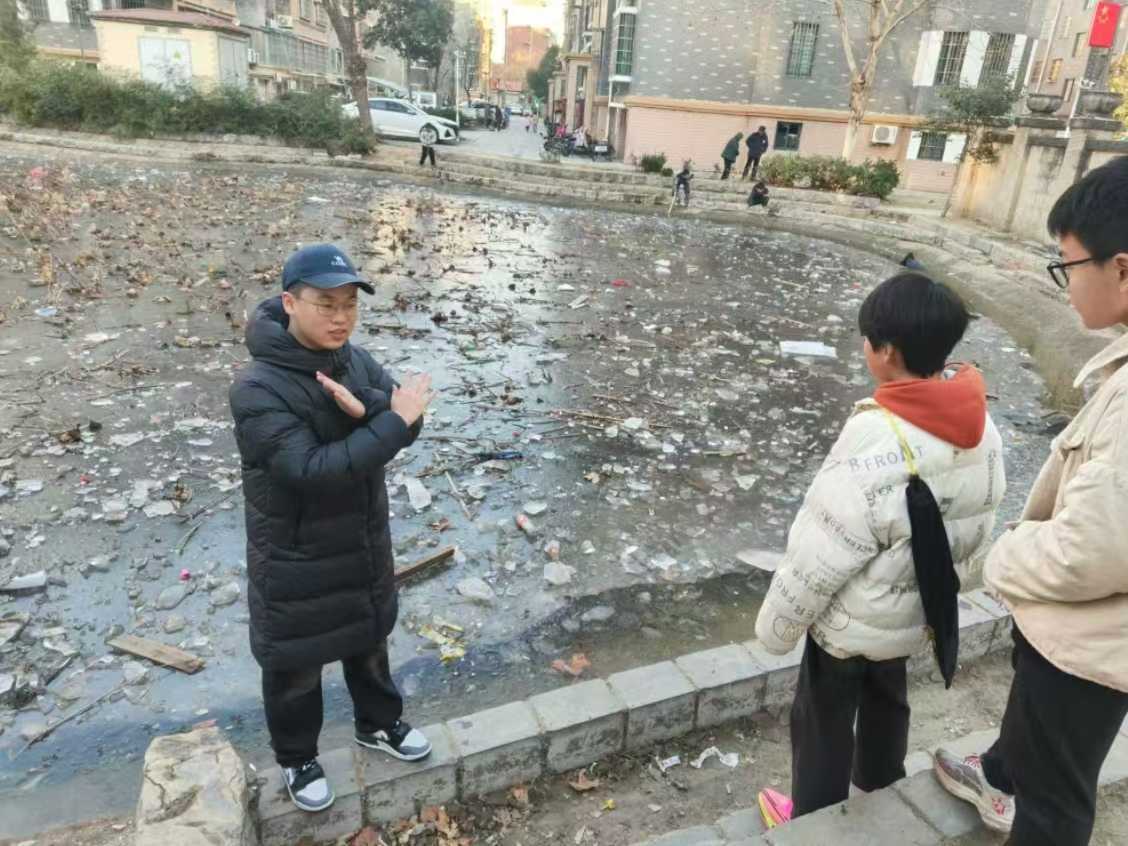 在活動的另一現場,實踐隊隊員通過生動的手勢和詳細的講解,向孩子們介紹了冬季池塘可能存在的危險,包括冰面承重能力弱、水下雜物易導致被困等情況。同時,還傳授了一些基本的自救和他救方法,如不慎落水后如何保持冷靜、如何在確保自身安全的前提下進行施救等。