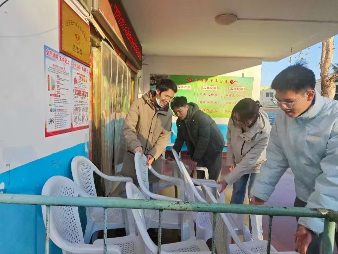 注:圖為實踐團成員梅中國、范曉宇、張夢榮、魏俊杰整理椅子