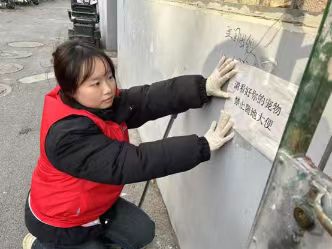 實踐團成員在社區內張貼“寵物禁止大小便”標識,能有效維護社區環境衛生,讓居民在散步、休閑時心情愉悅,避免因踩到糞便帶來不便和困擾,營造干凈、舒適的社區生活環境。