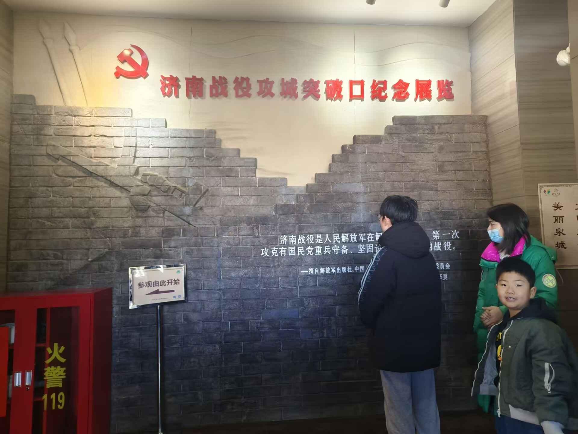 此外,學(xué)生們還參觀了濟(jì)南戰(zhàn)役攻城突破口紀(jì)念展覽館。展覽館內(nèi),通過實(shí)物復(fù)原、歷史文獻(xiàn)資料、圖片等多種形式,生動展現(xiàn)了濟(jì)南戰(zhàn)役的歷史背景和革命先烈的英勇事跡。學(xué)生們在這里深刻感受到了革命先輩們?yōu)榱嗣褡褰夥藕腿嗣裥腋6⒂聤^斗的精神。