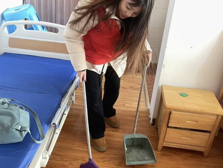 此外,實踐團成員還積極幫助養老院工作人員打掃衛生、整理房間。他們不怕臟、不怕累,認真擦拭每一張桌椅,清掃每一個角落,讓養老院的環境煥然一新。