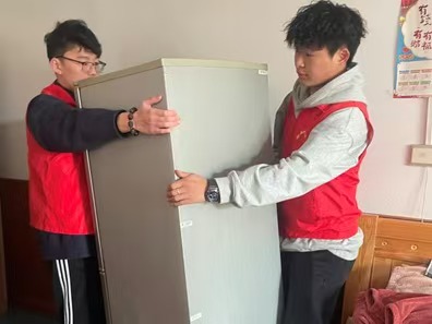 了解到老人們的生活狀況,實踐團成員發現,老人的冰箱離老人房間距離較遠,老人行動不便,于是實踐團成員合力把冰箱搬進了老人自己的臥室。