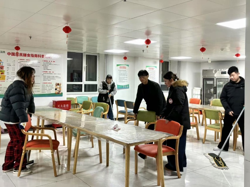 在這六天里,成員們展現出了極高的熱情,面對寒冷天氣,也能投入到衛生清掃工作中。擦窗戶的成員,不放過任何一個污漬;清掃地面的成員,認真地將每一處角落的灰塵都清理干凈;經過成員們的努力,服務中心面貌煥然一新。