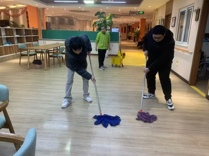 當天上午,實踐團成員一到養老院就開始了工作。每兩人負責一層樓的清潔工作。實踐團成員發揚不怕臟、不怕累的精神,細心打掃每個角落,包括擦拭窗臺、扶手、桌椅等,給老人們營造一個干凈舒適的生活環境。