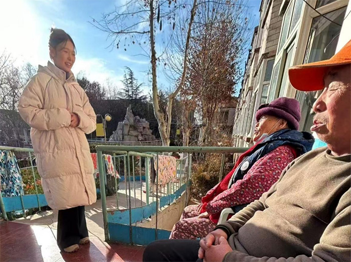 實踐團成員耐心地傾聽著老人講述故事,與老人聊天,臉上洋溢著溫暖的神情。老人們也格外開心,仿佛在這些年輕的面孔中找到了久違的親切與陪伴。