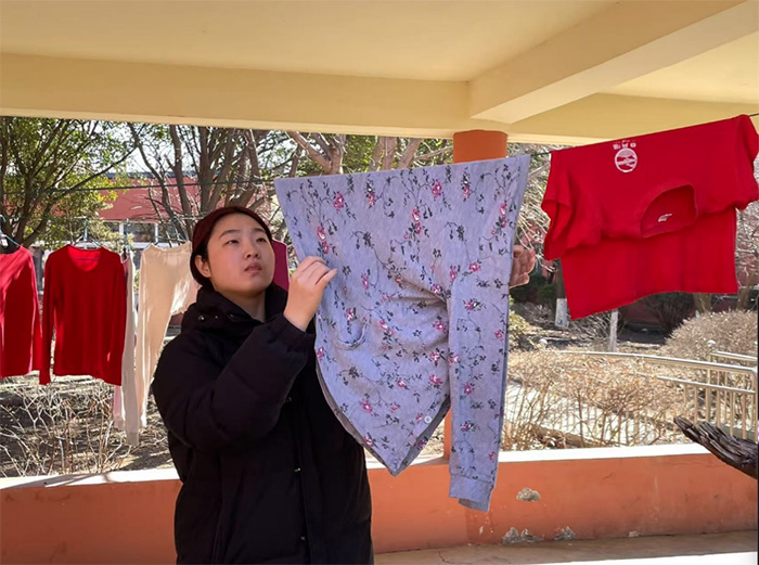與此同時,實踐團成員還細心地給老人們晾曬衣物,他們幫助老人們整理床鋪,趁著陽光明媚的正午給老人們晾曬衣服。