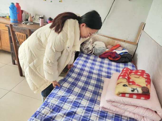 活動伊始,曹銘蔓同學便迅速投入到緊張而有序的工作中,她的任務是為老年公寓的老人們收拾宿舍。只見她細心地檢查每一張床鋪,將被褥鋪得平平整整,確保老人們能夠擁有一個舒適的睡眠環境。她的細致入微,讓宿舍煥然一新,讓老人們能夠在這里安心居住,享受晚年生活。