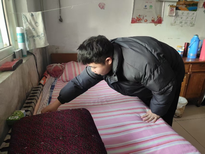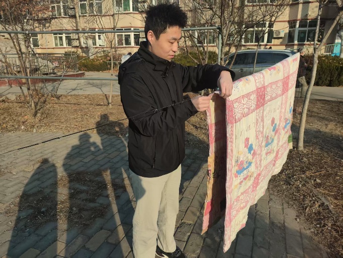 李志文則化身勤勞的“小太陽”,為老人們晾曬被子,讓陽光的味道彌漫在每一張床鋪。