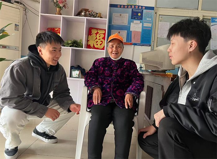 在陽光明媚的日子里,實踐團成員陪著老人在院子里曬太陽,大家圍坐在一起,閑話家常。期間,成員們用相機記錄下與老人相處的美好瞬間,照片中的每一張笑臉都洋溢著溫暖與幸福。