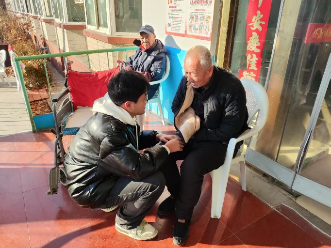 與此同時,李修帥同學拿起掃帚,認真打掃院子,為老人們創造了一個干凈舒適的戶外活動空間。蘇雅琦同學則陪伴老人們曬太陽,與他們一起享受冬日暖陽,感受生活的美好。王峰同學則走進廚房,為老人們準備了一頓頓可口的晚飯,讓他們品嘗到家的味道。飯后王峰同學還為老人科普飲食健康知識,得到了老人的高度認可。