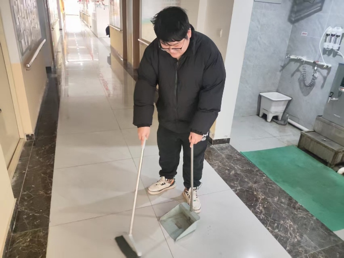 活動當天,陽光正好,志愿者們一抵達養老院,便迅速有序地展開服務。一些志愿者憑借自己的專業技能,為老人們提供志愿服務,量血壓、檢查安全設施、打掃衛生,成員田好棲給老人量血壓,耐心細致地解答老人們關于健康護理方面的疑問,并給予專業的保健建議。