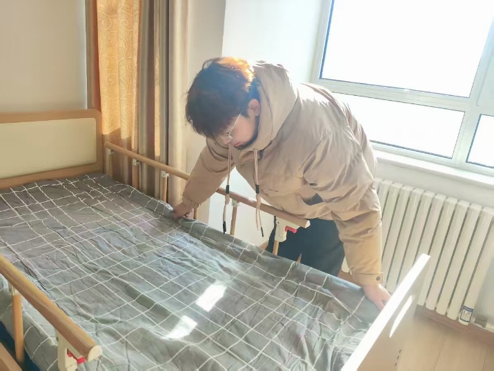 在志愿服務過程中,志愿者們始終保持著溫和的態度,讓老人們倍感安心。實踐團的成員從小事做起,從細節抓起。實踐團成員丁欣怡,耐心地給老人疊衣服,分類整理,方便老人們的日常生活。許圣博給老人曬被子配合宋廣浩整理老人們內務,讓他們生活更舒心。