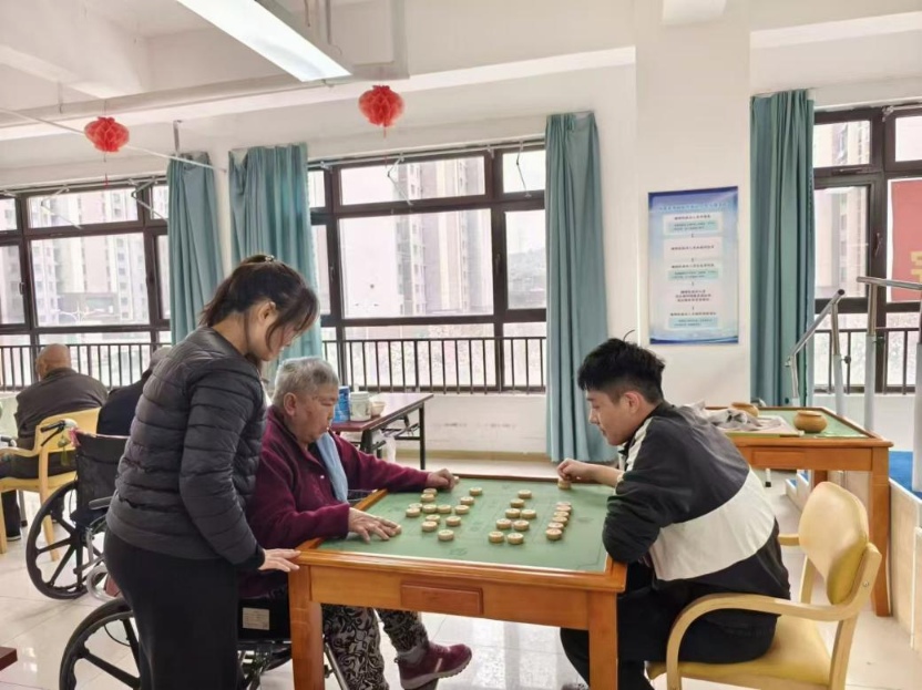 實踐團成員董傳碩組織起了象棋娛樂活動,他耐心地教老人們下象棋,講解規則,在棋局中還巧妙地制造輕松氛圍,讓老人們在娛樂中收獲快樂,公寓里不時傳來陣陣歡聲笑語。尹佳瑞細心地為老人們整理床鋪,她把床單鋪得平平整整,被子疊得方方正正,還貼心地調整了枕頭的位置,讓老人們能舒適地休息。