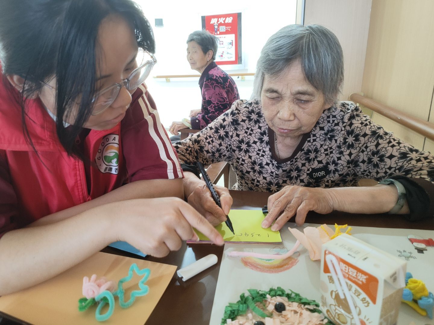圖為志愿者和老人一同制作陶泥手工。方曉鳳 供圖