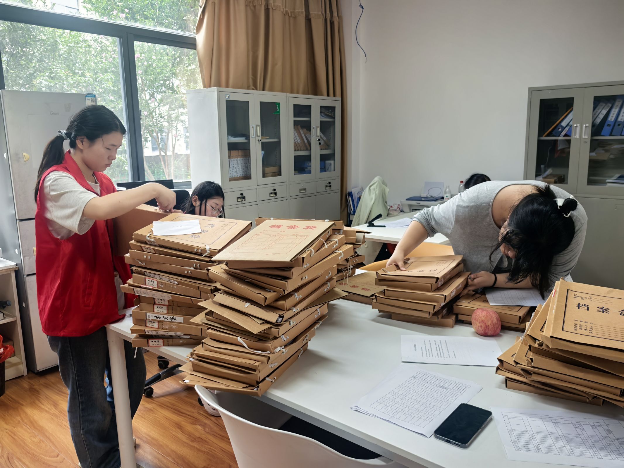 圖為志愿者們正在辦公室整理檔案文件。 葉欣雨 供圖