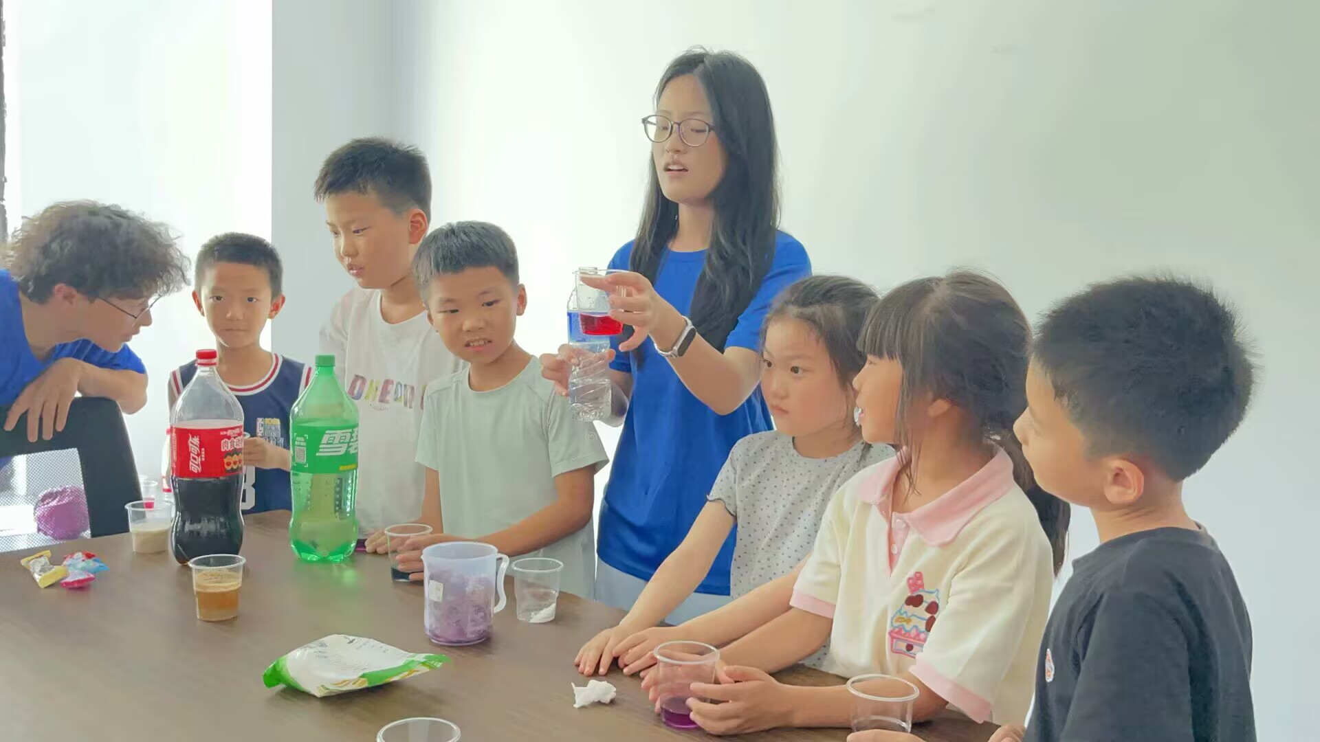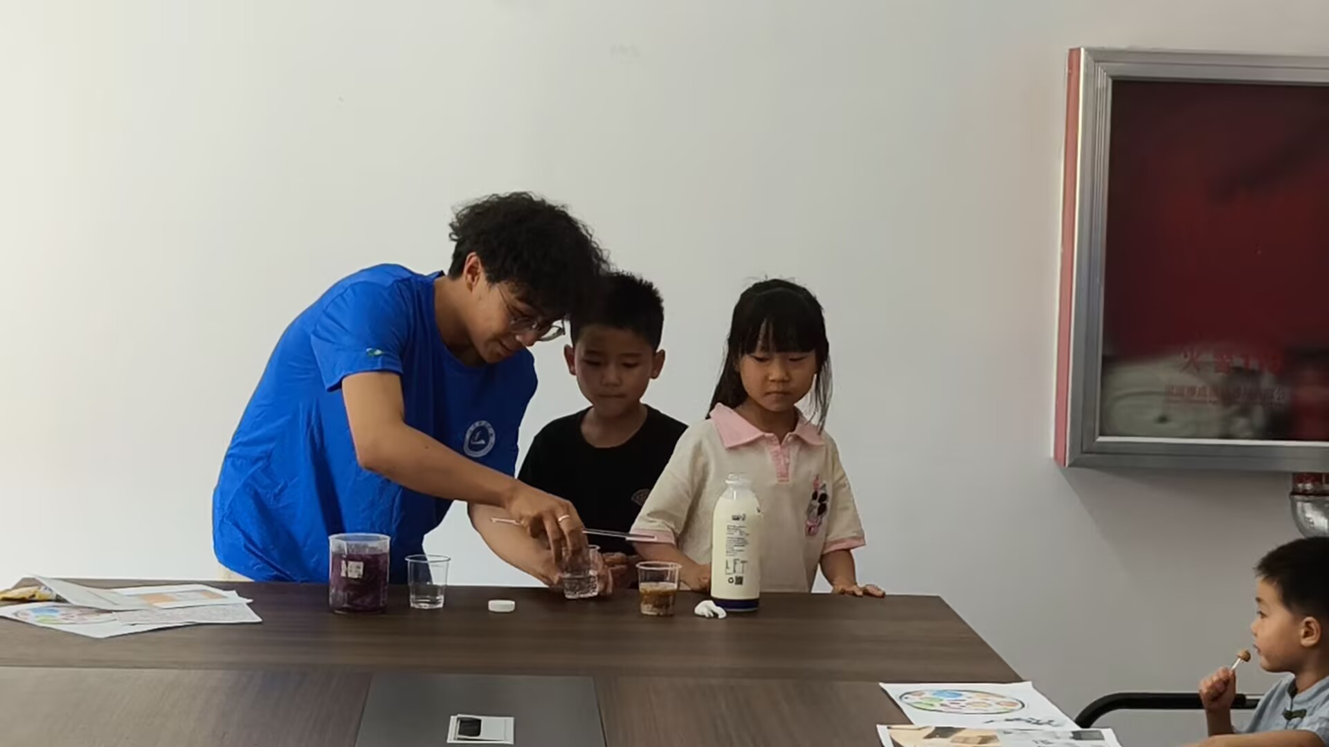 活動伊始,實踐團成員以生動活潑的語言,向小朋友們講解了食品添加劑、過期食品危害等基礎(chǔ)科普知識,用卡通圖片幫助孩子們理解。隨后進入實驗環(huán)節(jié),在“可樂遇奶”和“神奇的紫甘藍”小實驗中,實踐團成員讓小朋友們親自動手參與做科學(xué)食品小實驗,體驗科學(xué)的魅力。接著,實踐團成員圍繞食品科普主題為小朋友們播放了食品動畫視頻,以動畫形式再次鞏固所學(xué)知識,在寓教于樂中加深了對食品安全的理解。