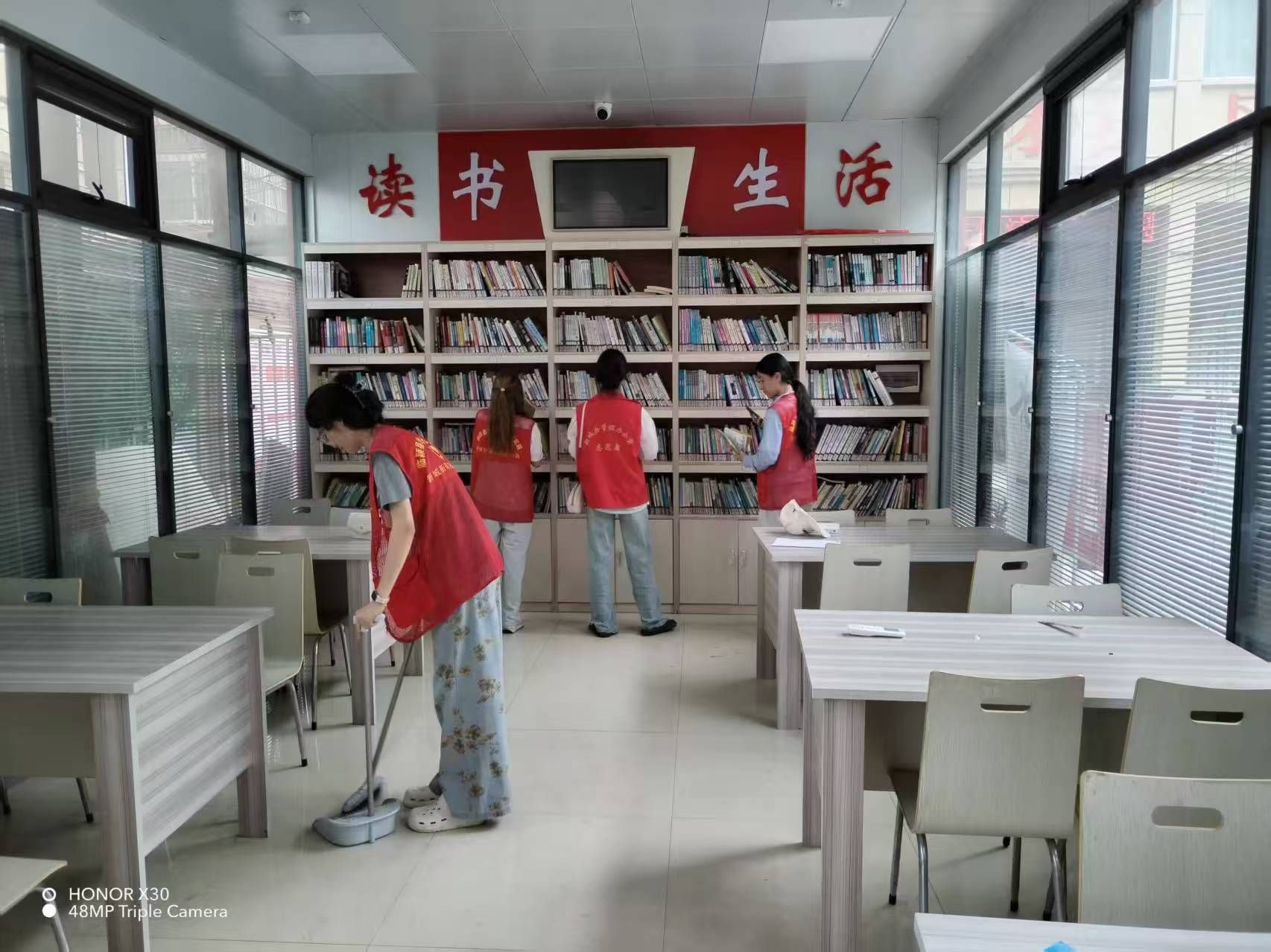 在圖書館,還能看到志愿者忙碌而專注的身影。他們以高度的責(zé)任感和專業(yè)精神,有條不紊地開展各項(xiàng)工作,將書籍科學(xué)分類,重新排列上架,讓讀者能夠快速獲取所需資料。同時(shí),對(duì)圖書館的各個(gè)角落進(jìn)行深度清潔,擦拭書架、清掃地面、整理桌椅,為讀者營造出整潔有序的閱讀環(huán)境。