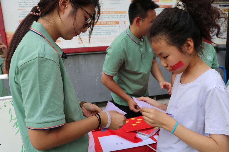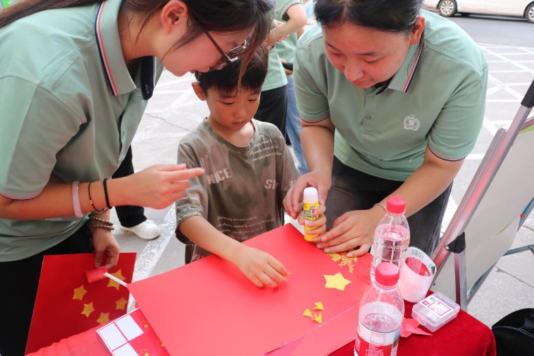 本次活動(dòng)精心設(shè)計(jì)了“巧手制紅旗”、“創(chuàng)意繪紅魂”、“折紙寄紅心”三大特色環(huán)節(jié)。在“巧手制紅旗”環(huán)節(jié),宣講團(tuán)成員準(zhǔn)備好紅色卡紙、黃色五角星貼紙等材料,耐心講解五星紅旗的構(gòu)成與象征意義。孩子們?cè)谥笇?dǎo)下認(rèn)真粘貼五角星,親手制作出一面面鮮艷的“五星紅旗”,將對(duì)祖國的熱愛融入其中。在“創(chuàng)意繪紅魂”環(huán)節(jié),孩子們拿起畫筆,以卡通形象為載體,融入紅旗、天安門等元素,在畫紙上盡情發(fā)揮想象,用色彩繽紛的畫面描繪對(duì)祖國的美好憧憬。在“折紙寄紅心”環(huán)節(jié),宣講團(tuán)成員現(xiàn)場(chǎng)教學(xué),指導(dǎo)孩子們折疊愛心、千紙鶴等造型。小朋友們認(rèn)真仔細(xì)地學(xué)習(xí),完成充滿童趣的作品,寄托純真的祝福。