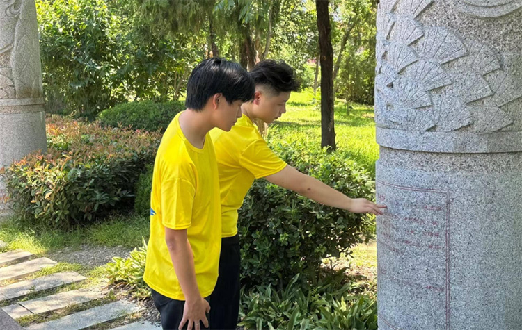 圖為團隊成員正在閱讀烈士相關的紀念文字 馮子豪 供圖