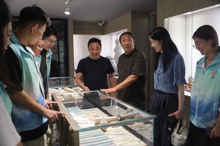 探秘漆屋:指尖觸摸千年楚韻團隊參觀了綠松石產業學院三清公司、展覽館陶漆金工作品展覽,不僅近距離欣賞了精妙絕倫的漆器漆畫,也了解了漆口紅、漆美甲等創新產品,驚嘆于漆藝“從傳統走向現代”的多元發展路徑。在劉善林深入淺出的講解中,團隊成員了解了漆器從選料、制胎(如木胎、夾纻胎/麻布胎體)到繁復的髹漆、彩繪、打磨直至成型的漫長歷程。最令大家興奮的是親手觸摸這些展品,感受漆器特有的溫潤光澤與厚重質感,令隊員們深刻感受到漆藝歷久彌新的藝術魅力。
