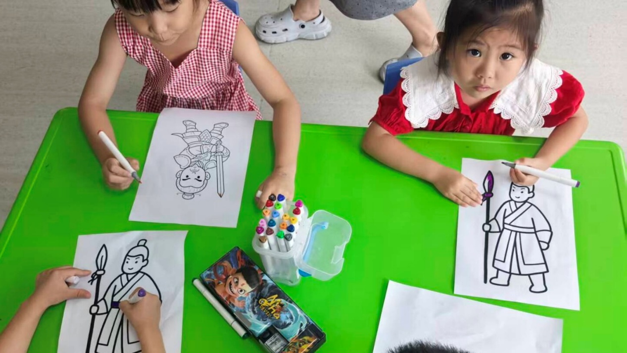 圖為小朋友們畫兵家愛文化相關(guān)圖畫。閆亦凡 供圖